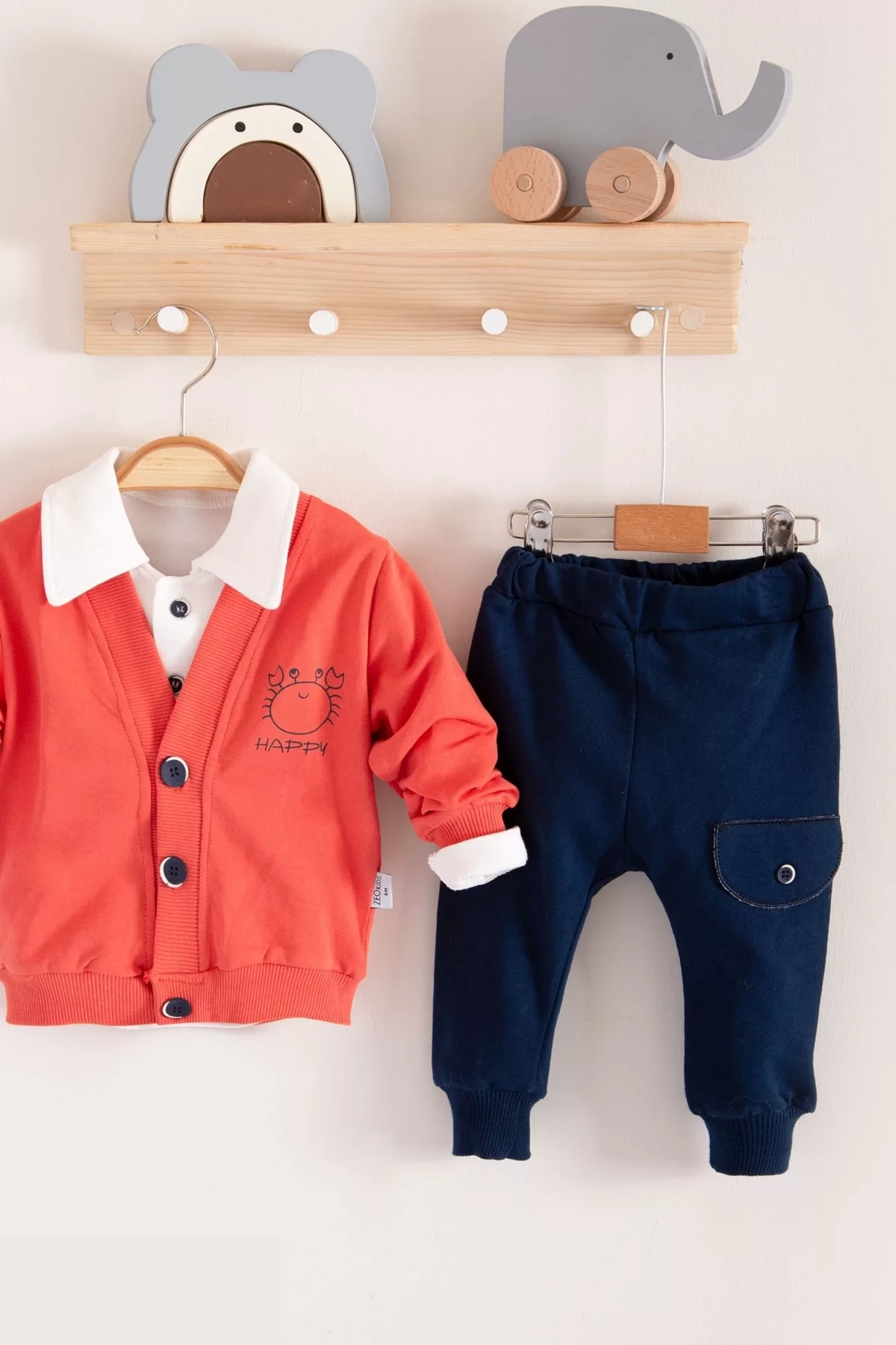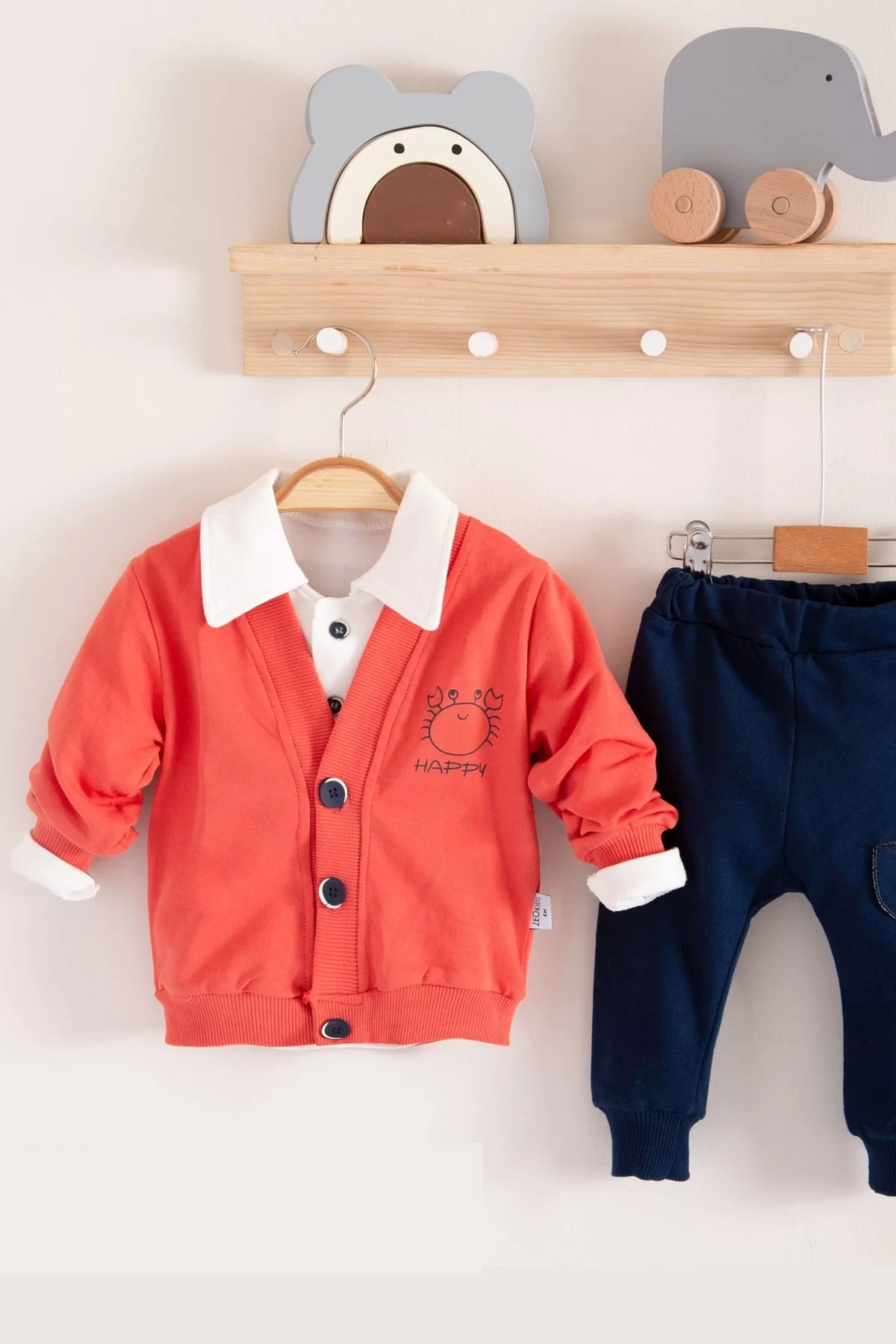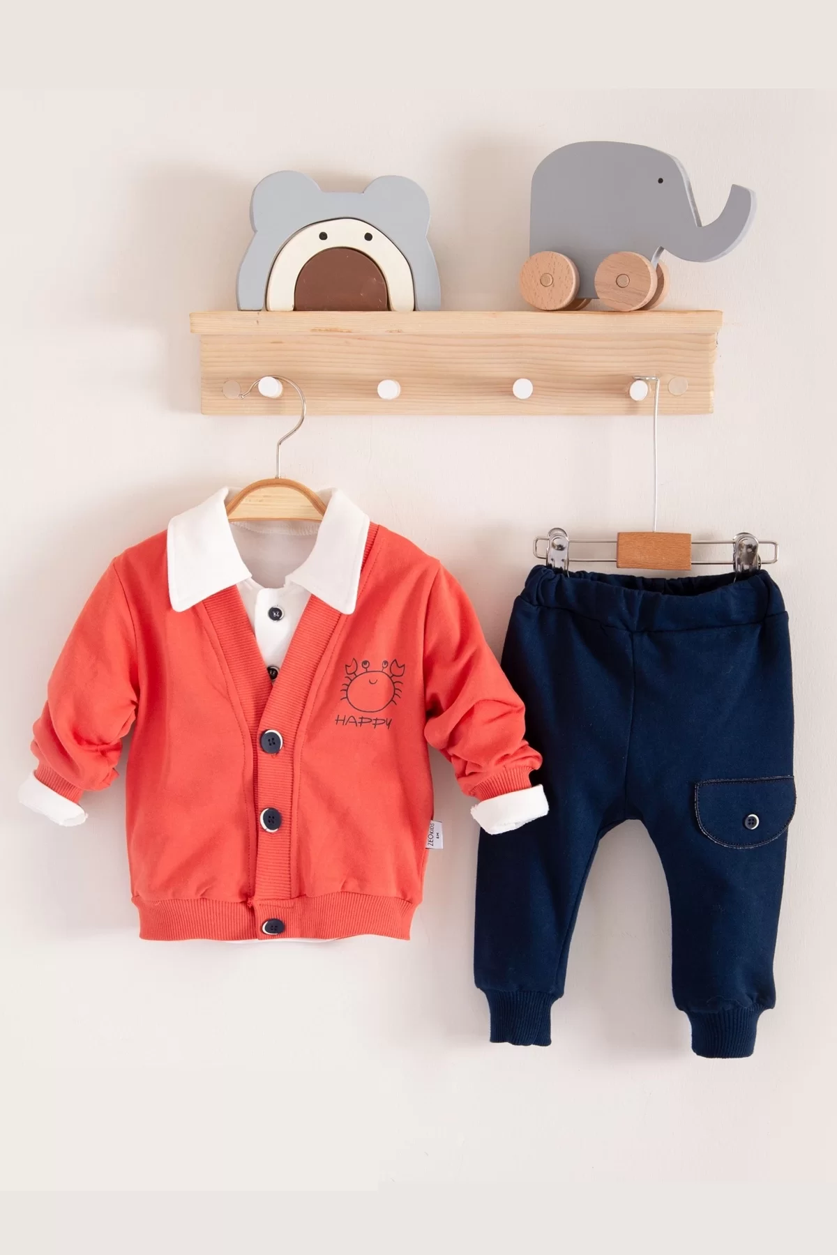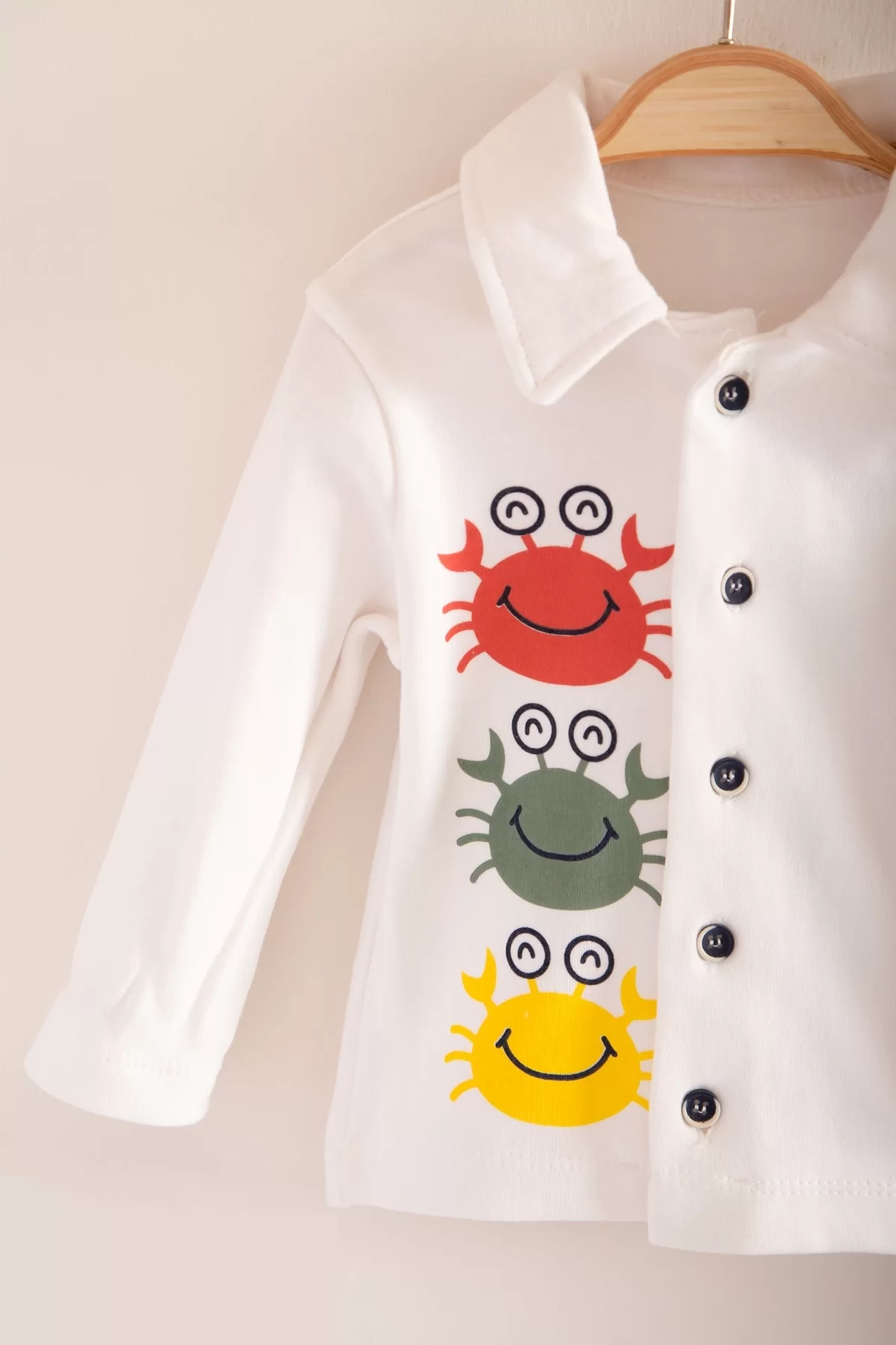 Yengeç Desenli Gömlek Yakalı 3’lü Erkek Bebek Takımı