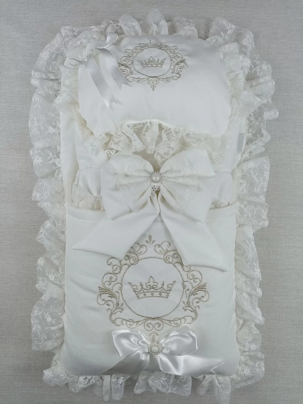 Yenidoğan Antalya Taç Nakışlı Kundaklı Trilüks Unisex 3lü Alt Açma Seti Ekru adet