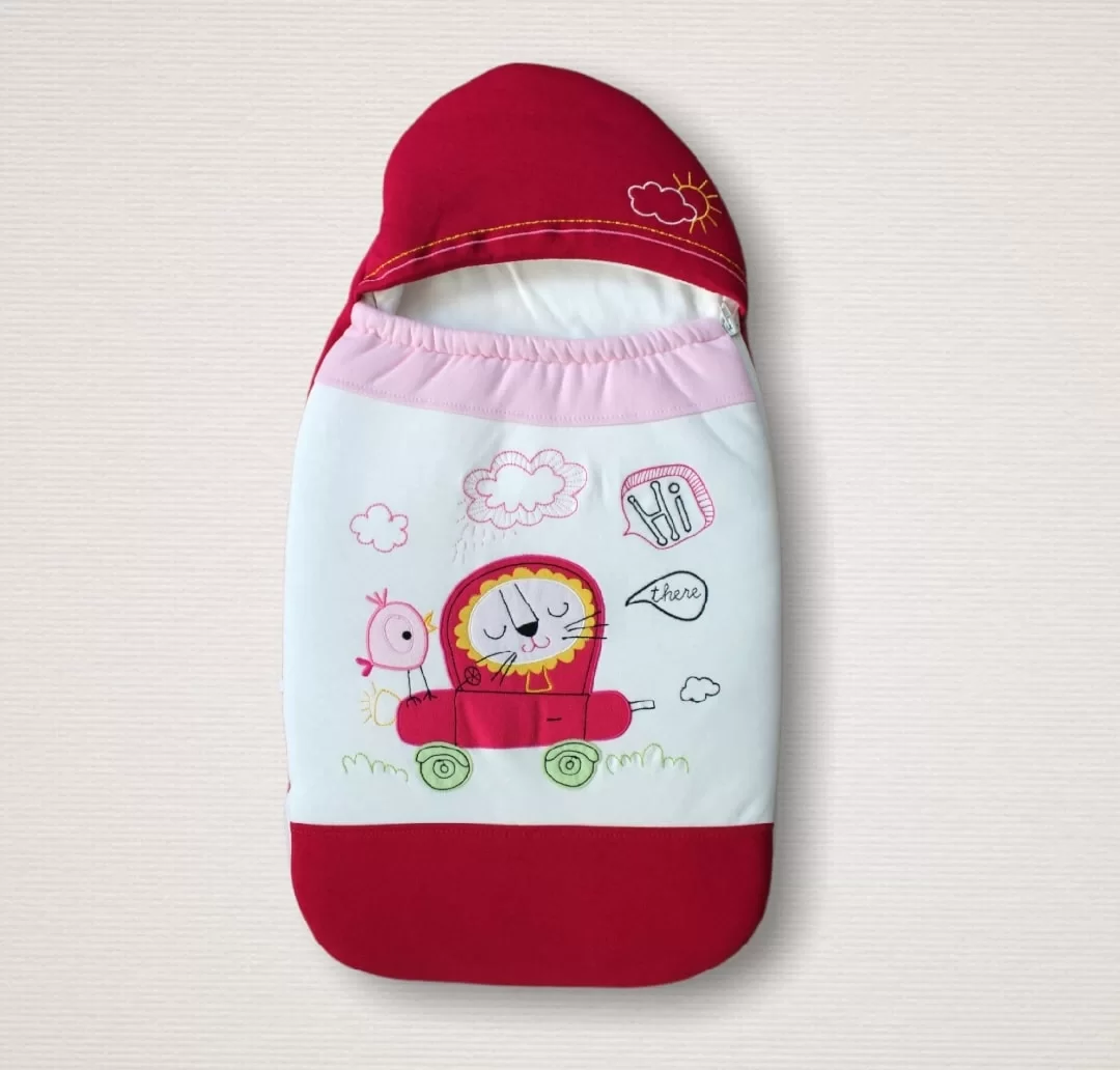 Yenidoğan Arabalı Aslan Nakışlı Fermuarlı Şapkalı Klasik Kundak Bebek Battaniyesi Pembe adet