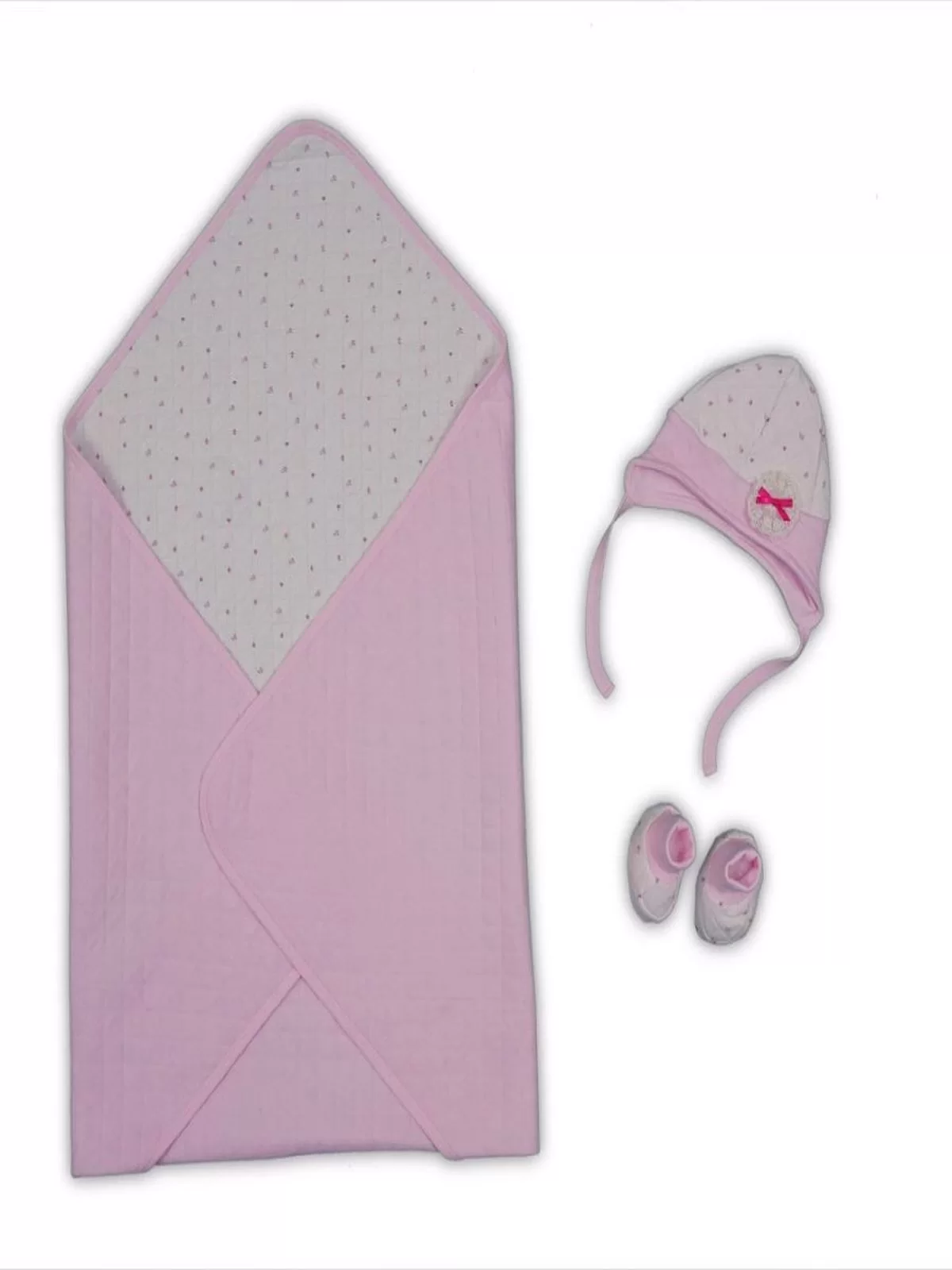 Yenidoğan Baskılı Double Face Şapka Ve Patikli 3lü Bebek Battaniye Takımı Pembe adet