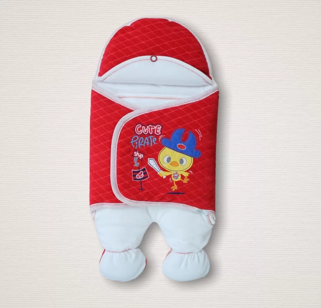 / Yenidoğan Cesur Şovalye Civciv Nakışlı Şapkalı Erkek Ayaklı Kundak Bebek Battaniyesi Kırmızı
