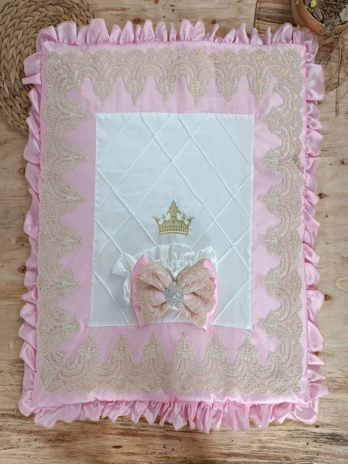 Yenidoğan Grand Lüks Kelebek Ağır Güpür İşlemeli Şapkalı Bebek Battaniyesi Kundak