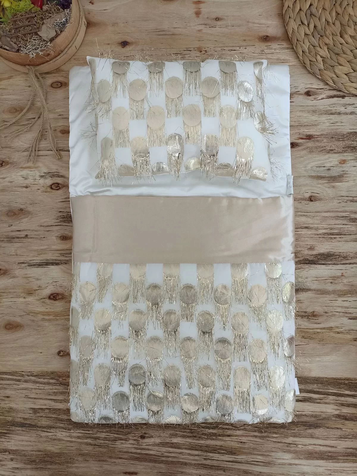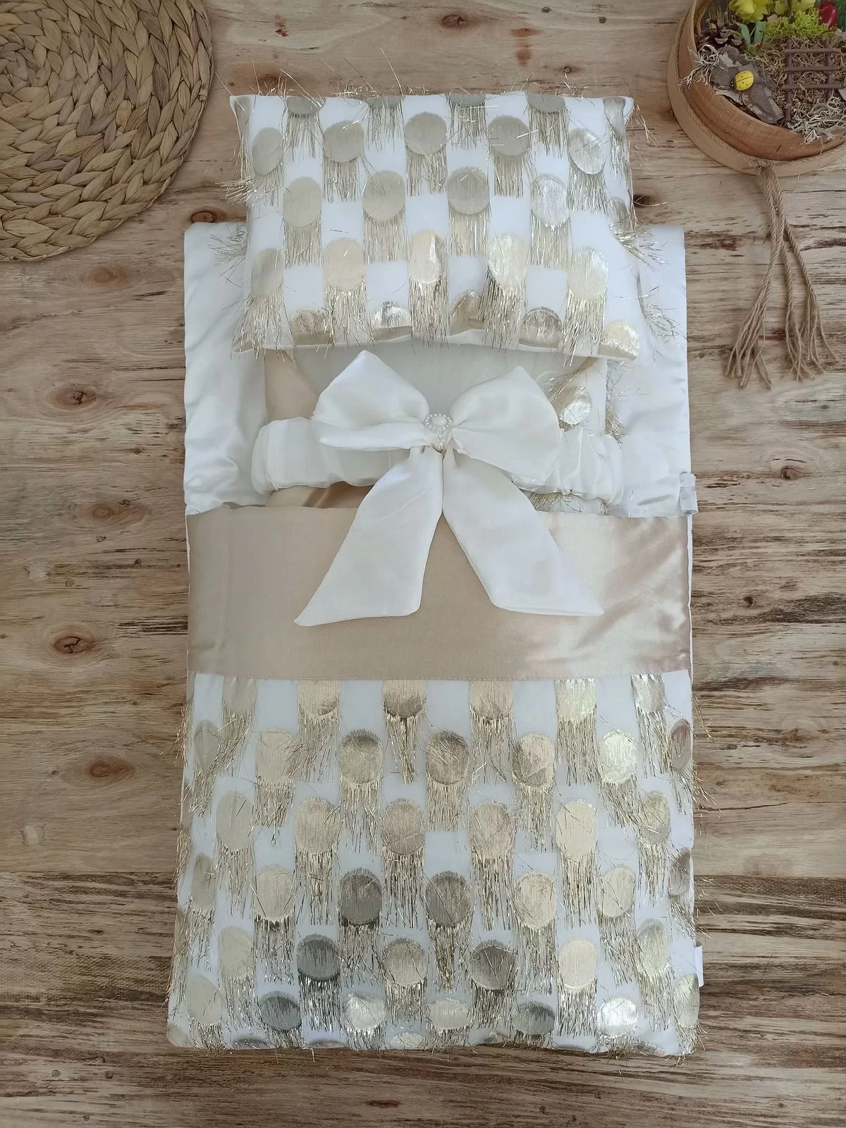 Yenidoğan İzmir İncisi Tül İşlemeli Pamuklu Fiyonklu Kundaklı Lüks 3lü Alt Açma Seti