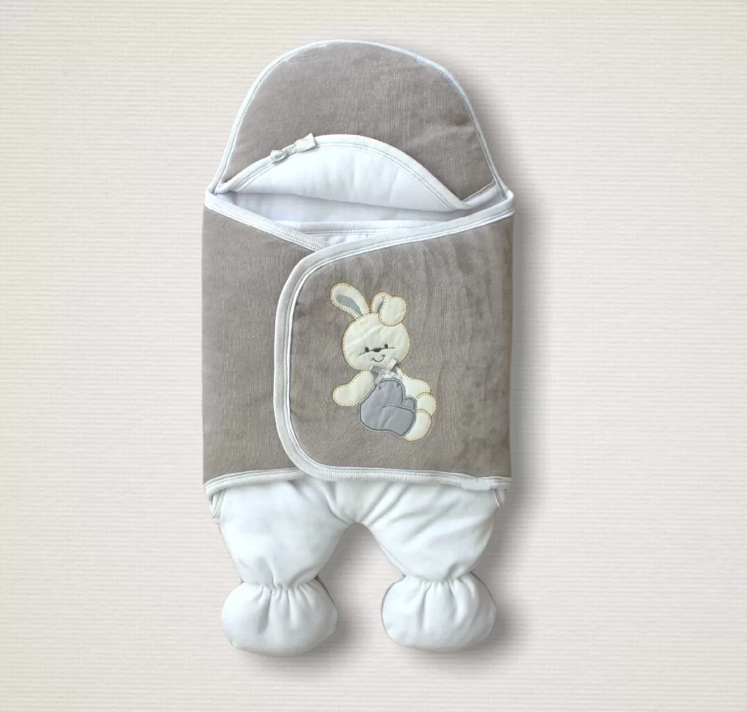 Yenidoğan Kadife Kumaş Ayıcık Nakışlı Şapkalı Kız Erkek Bebek Ayaklı Kundak Bebek Battaniyesi Kahverengi adet