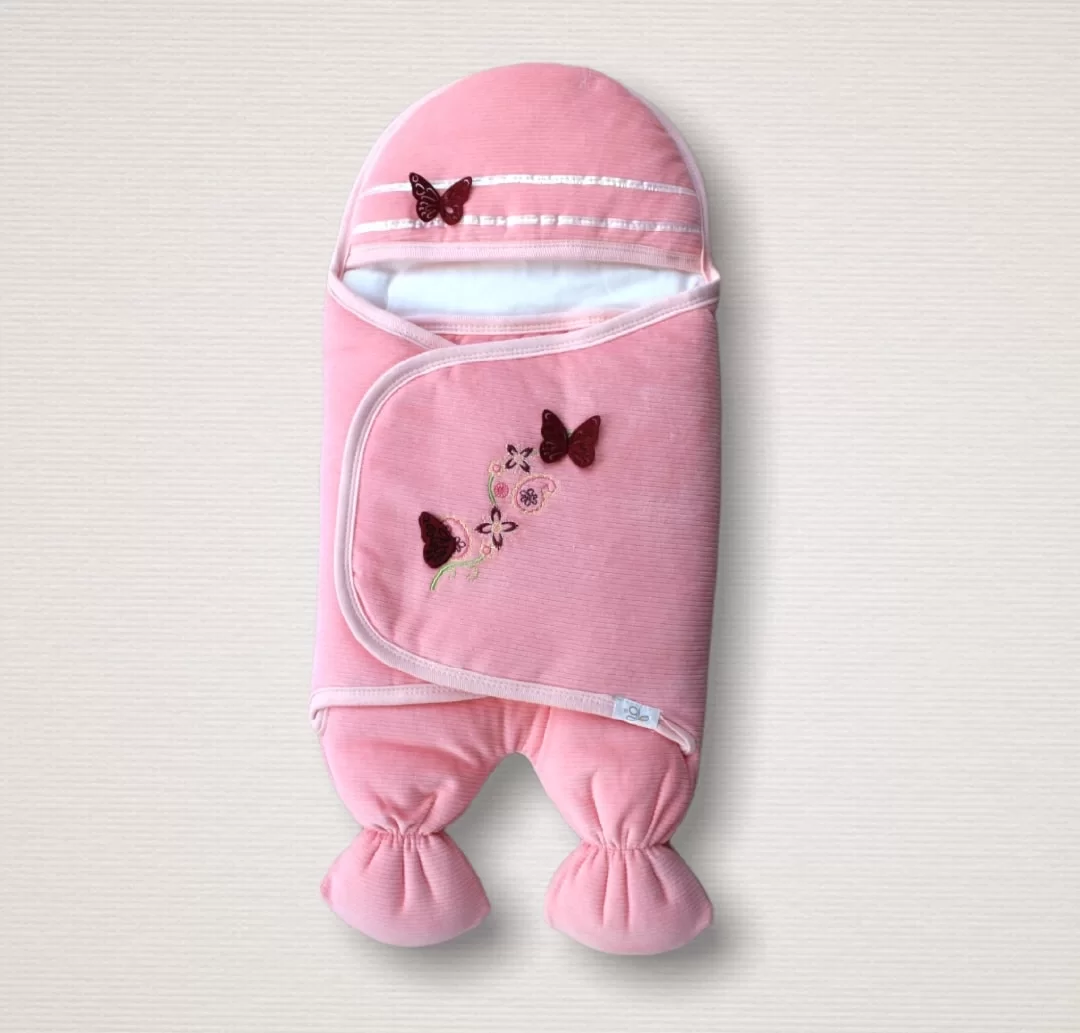 Yenidoğan Kadife Kumaş Kelebek Nakışlı Ayaklı Kundak Bebek Battaniyesi