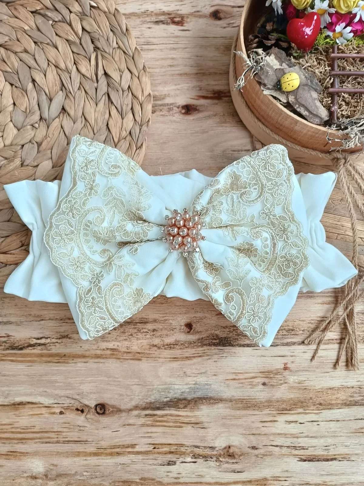 Yenidoğan Kuzulu Taç Nakış Güpürlü Fiyonklu Duvaklı Prizma Taş Unisex Kundak Bebek Battaniyesi Ekru adet