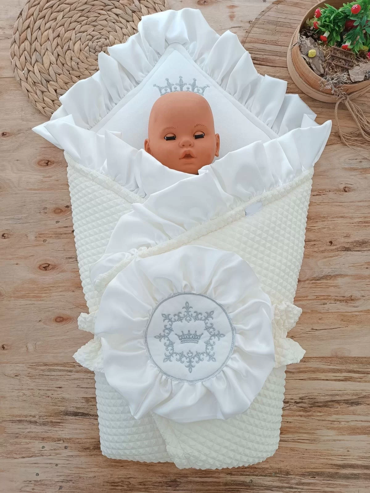 Yenidoğan Piramitland Soft Taç Nakışlı Bebek Battaniyesi Kundak Krem adet