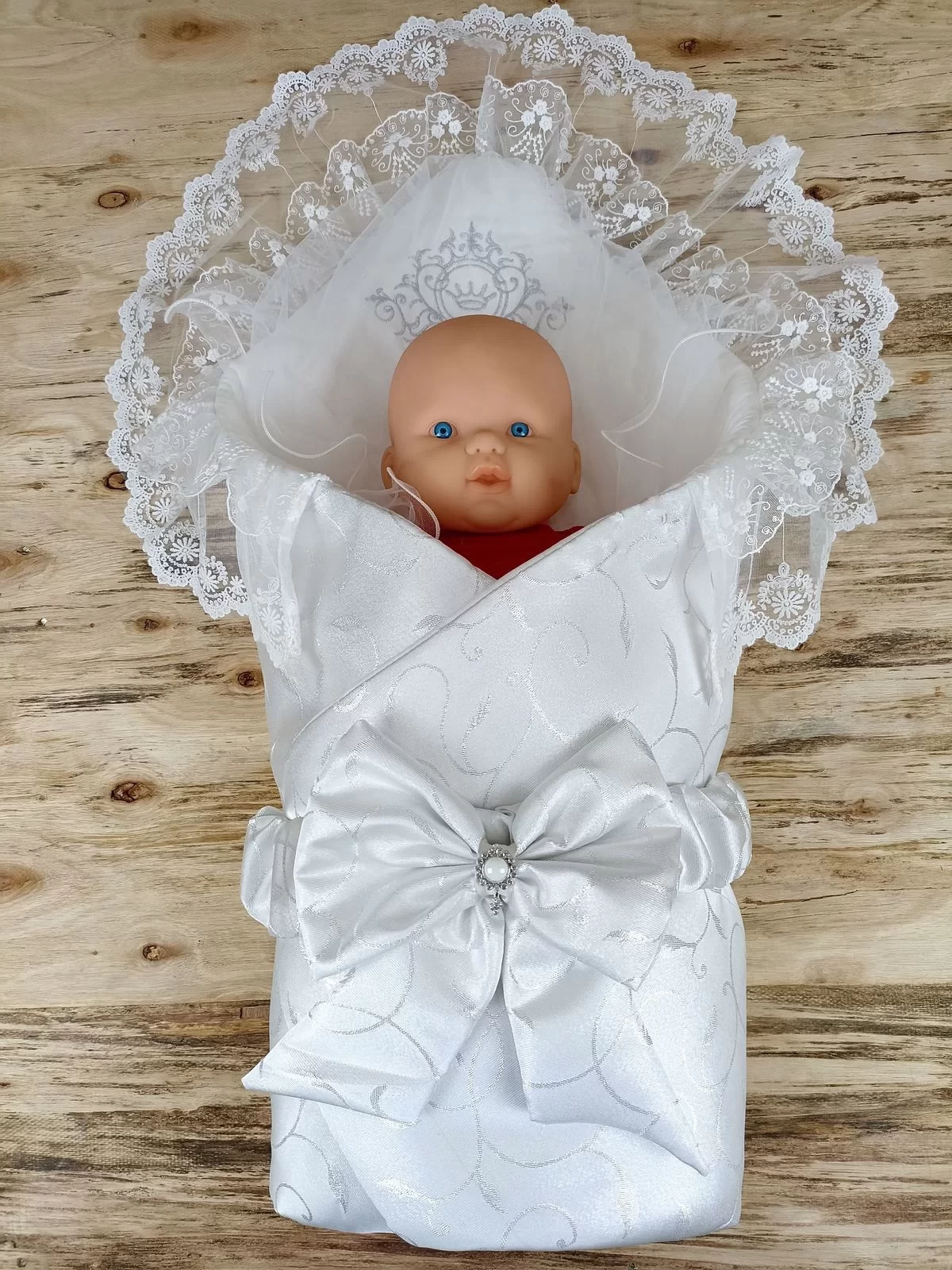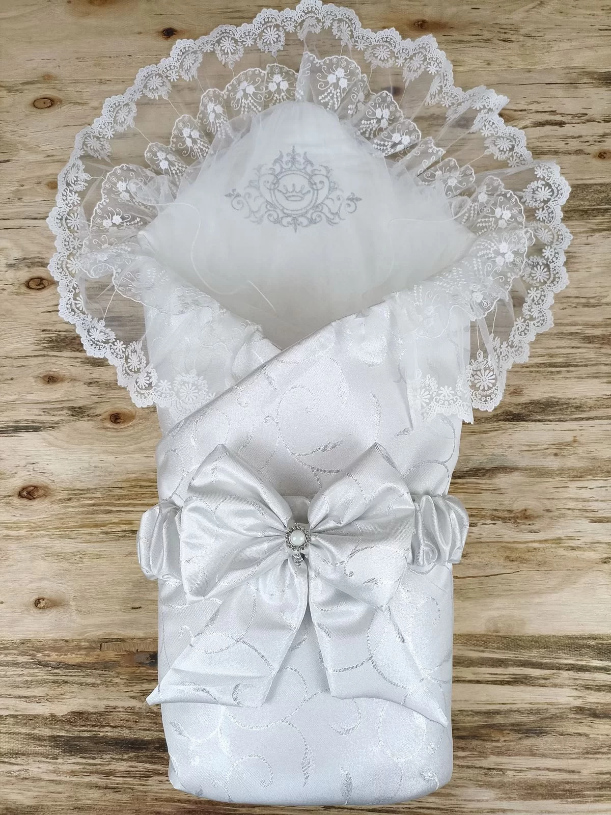 / Yenidoğan Pırıltı Taç Nakışlı İnci Delüks Kundak Bebek Battaniyesi Ekru