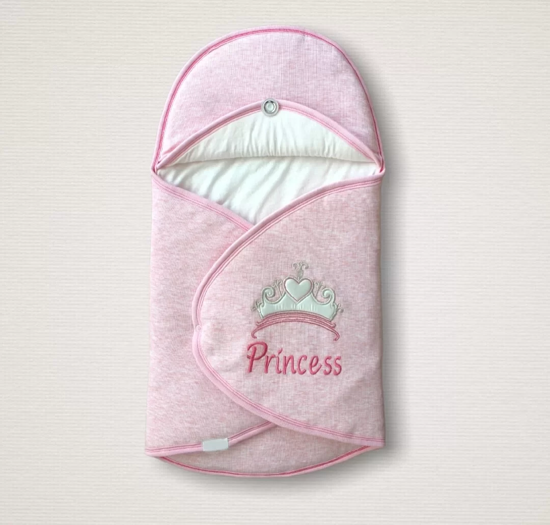 / Yenidoğan Princess Nakışlı Çizgi Efektli Kız Bebek Klasik Kundak Bebek Battaniyesi Pembe