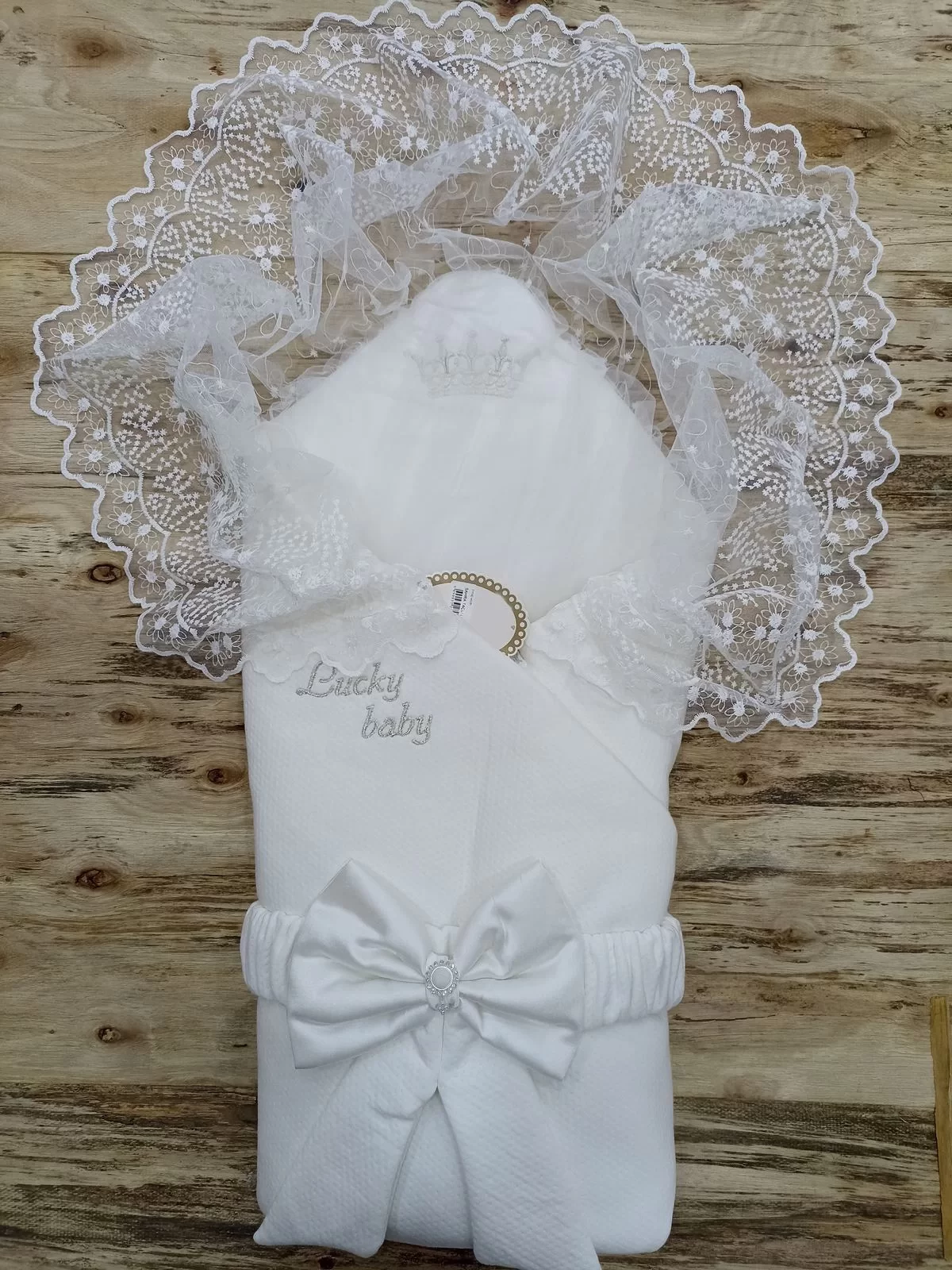 Yenidoğan Sahra Taç Lucky Baby Nakışlı Kumru Kundak Bebek Battaniyesi Ekru adet