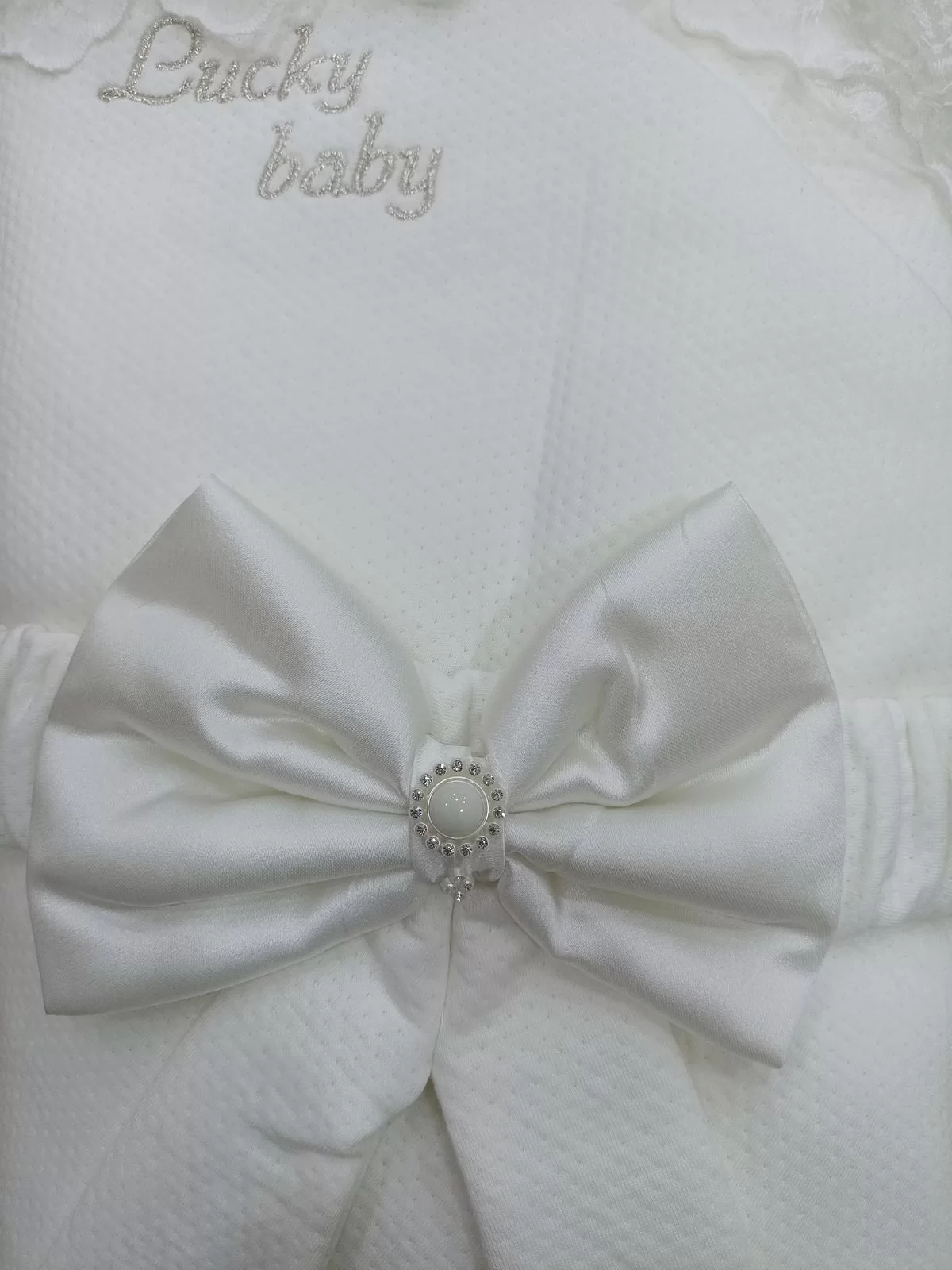 Yenidoğan Sahra Taç Lucky Baby Nakışlı Kumru Kundak Bebek Battaniyesi Ekru