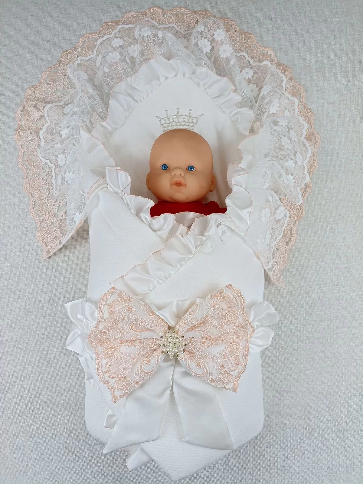 Yenidoğan Sahra Taç Nakışlı Trilüks Kundak Bebek Battaniyesi Ekru adet