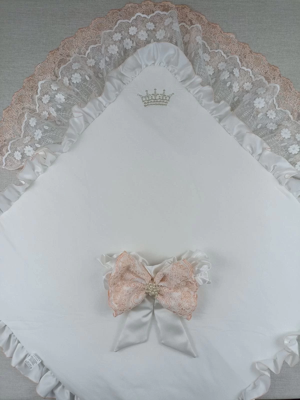 / Yenidoğan Sahra Taç Nakışlı Trilüks Kundak Bebek Battaniyesi Ekru
