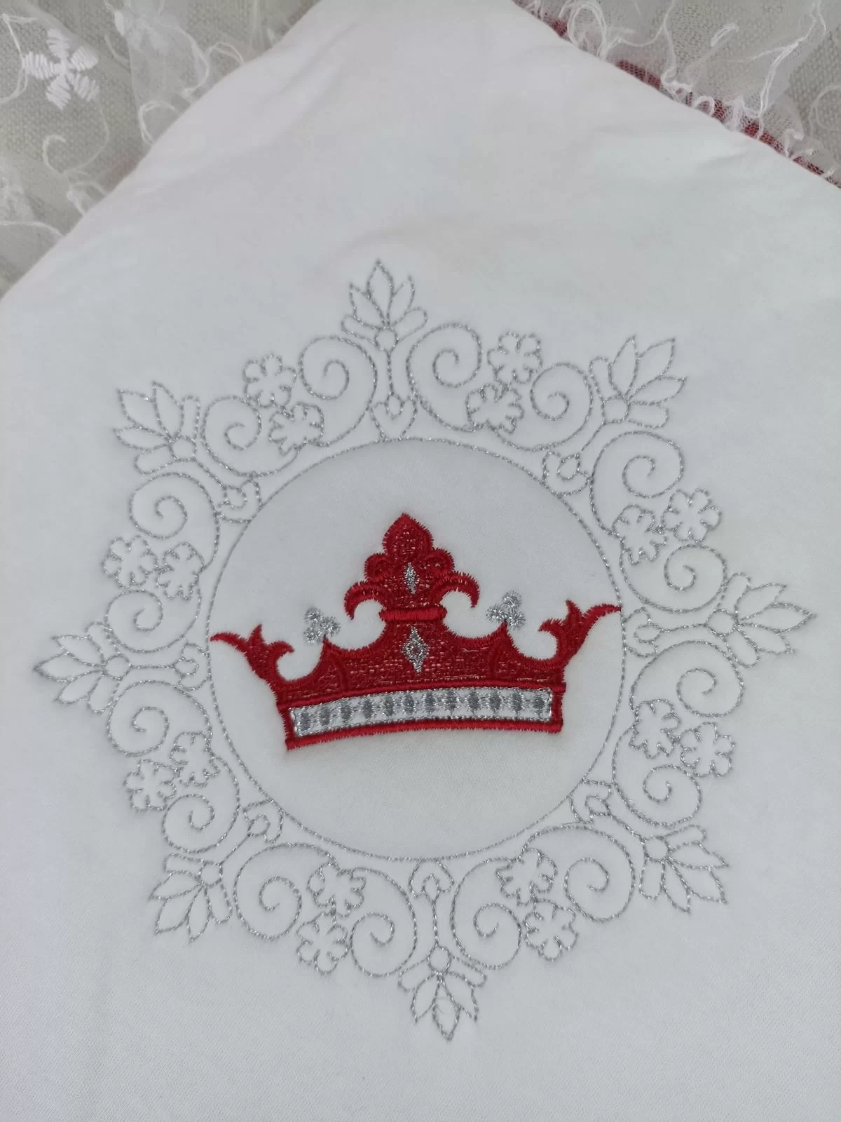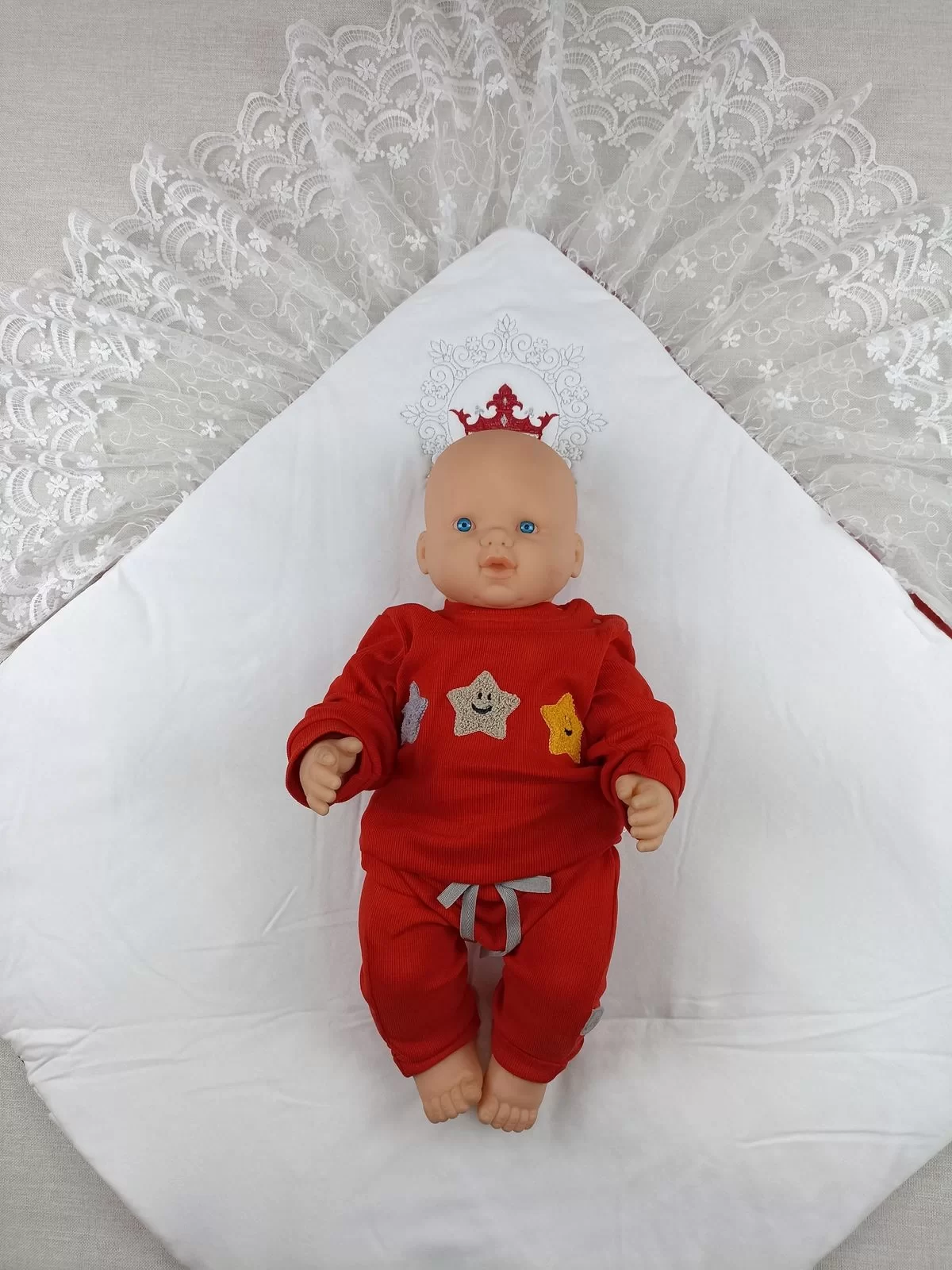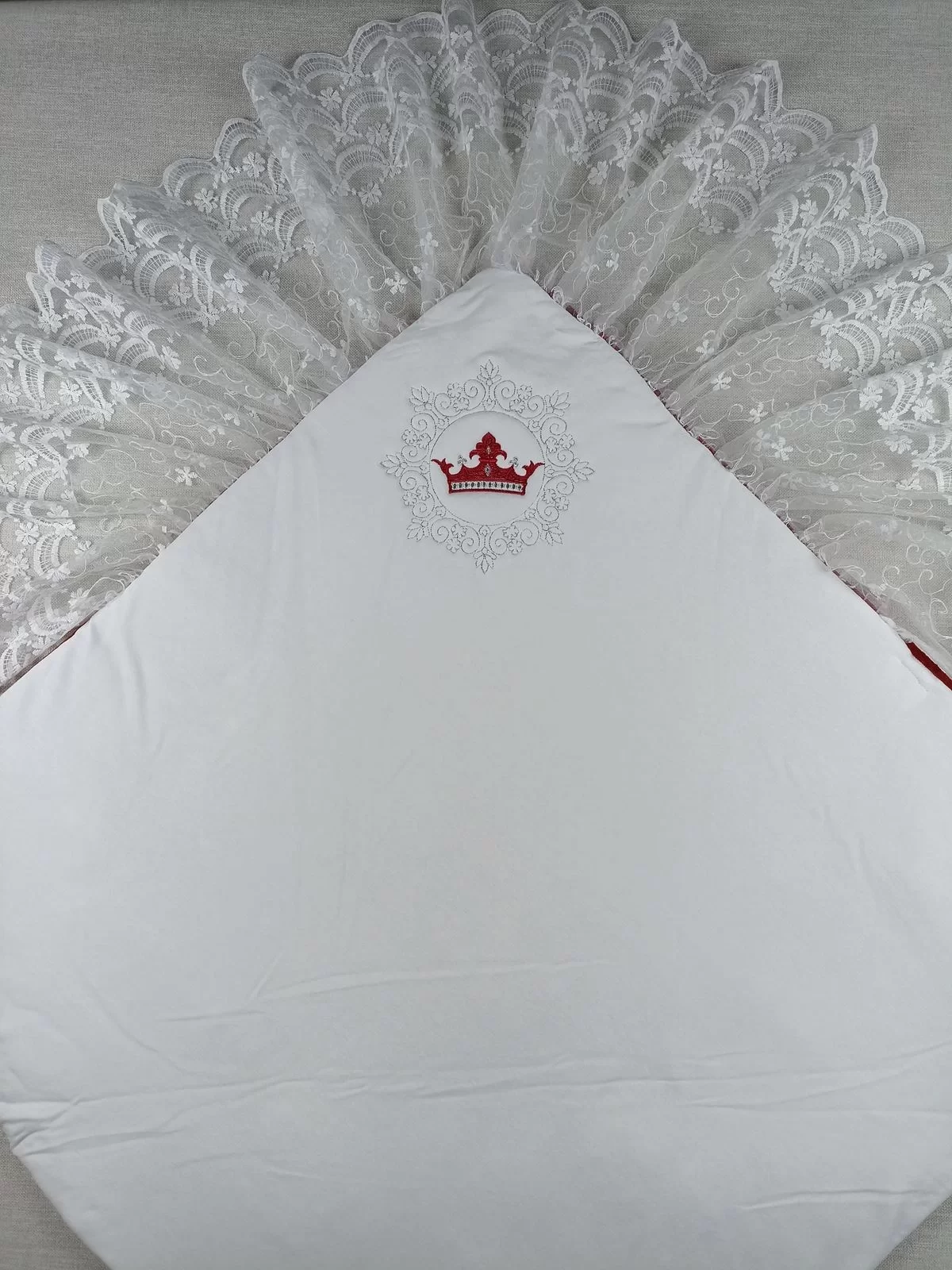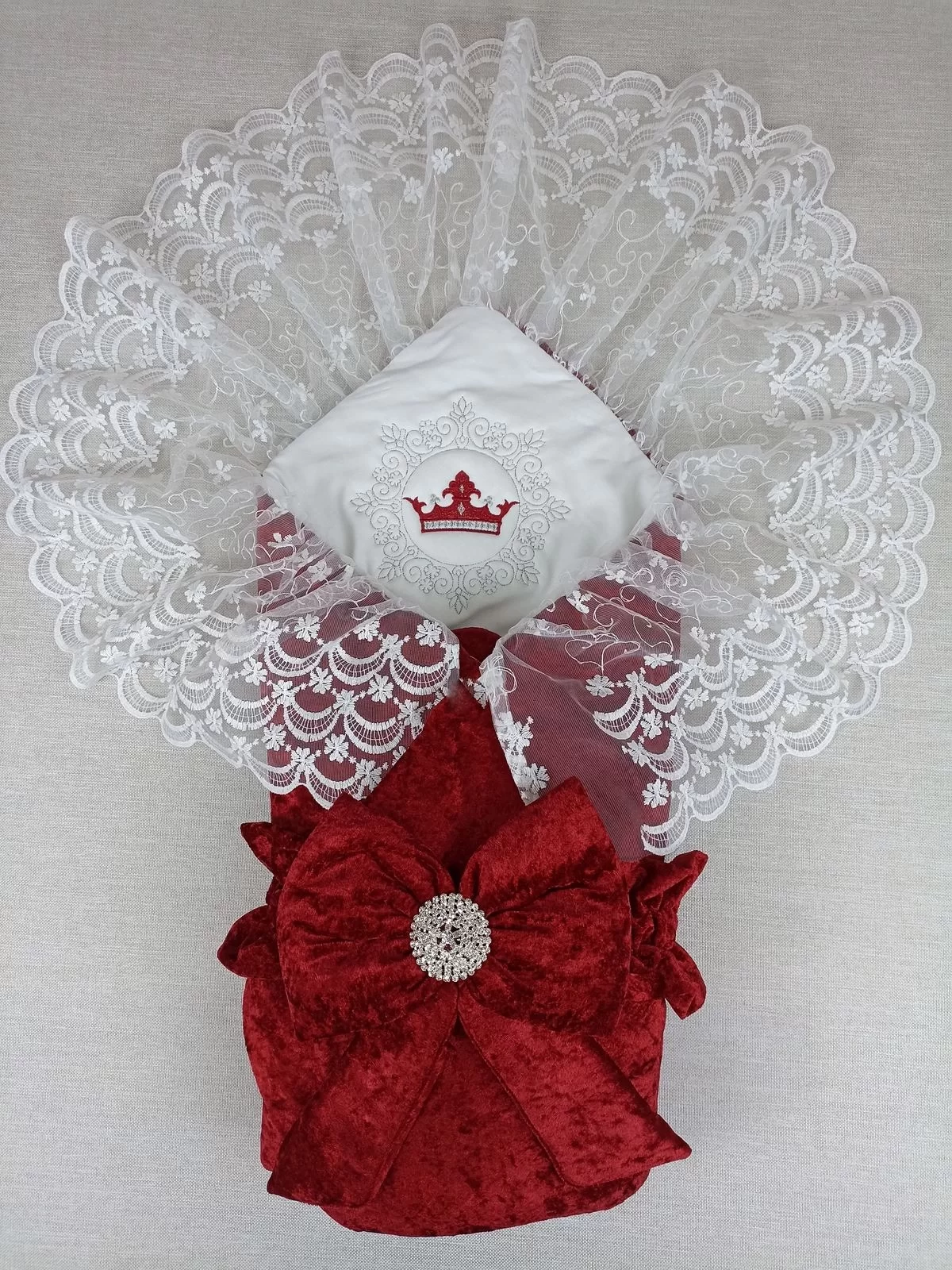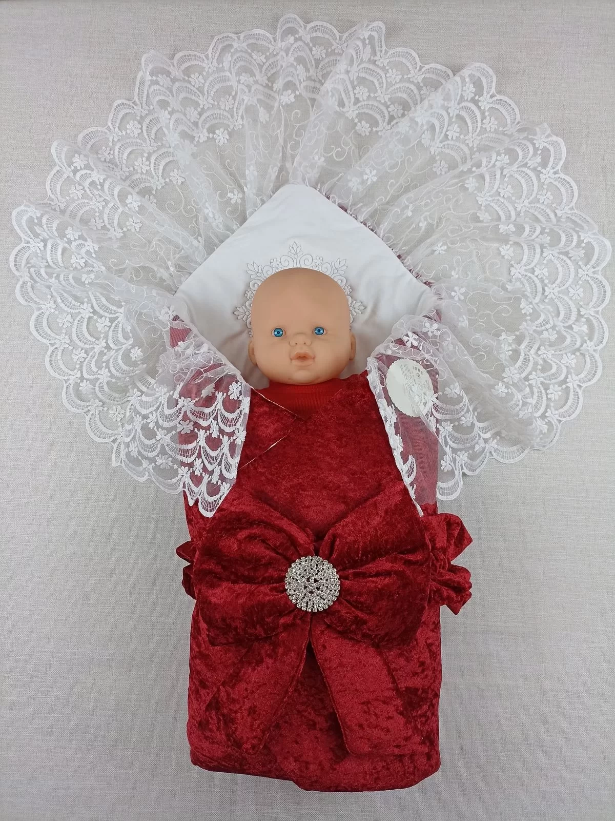 / Yenidoğan Saray Kadife Taç Nakışlı İnci Fiyonklu Dantel Duvak Trilüks Kundak Bebek Battaniye Bordo