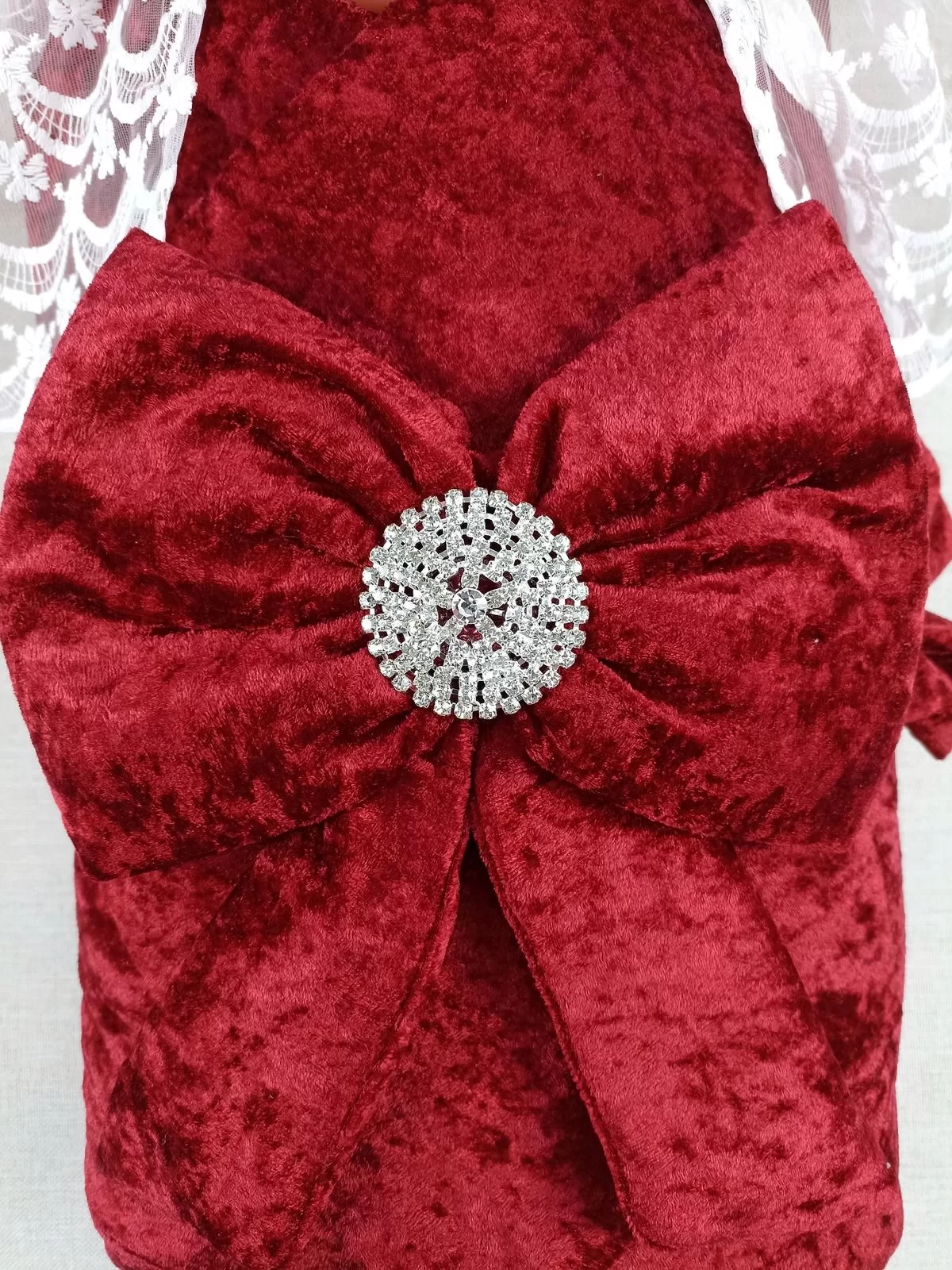 Yenidoğan Saray Kadife Taç Nakışlı İnci Fiyonklu Dantel Duvak Trilüks Kundak Bebek Battaniye Bordo