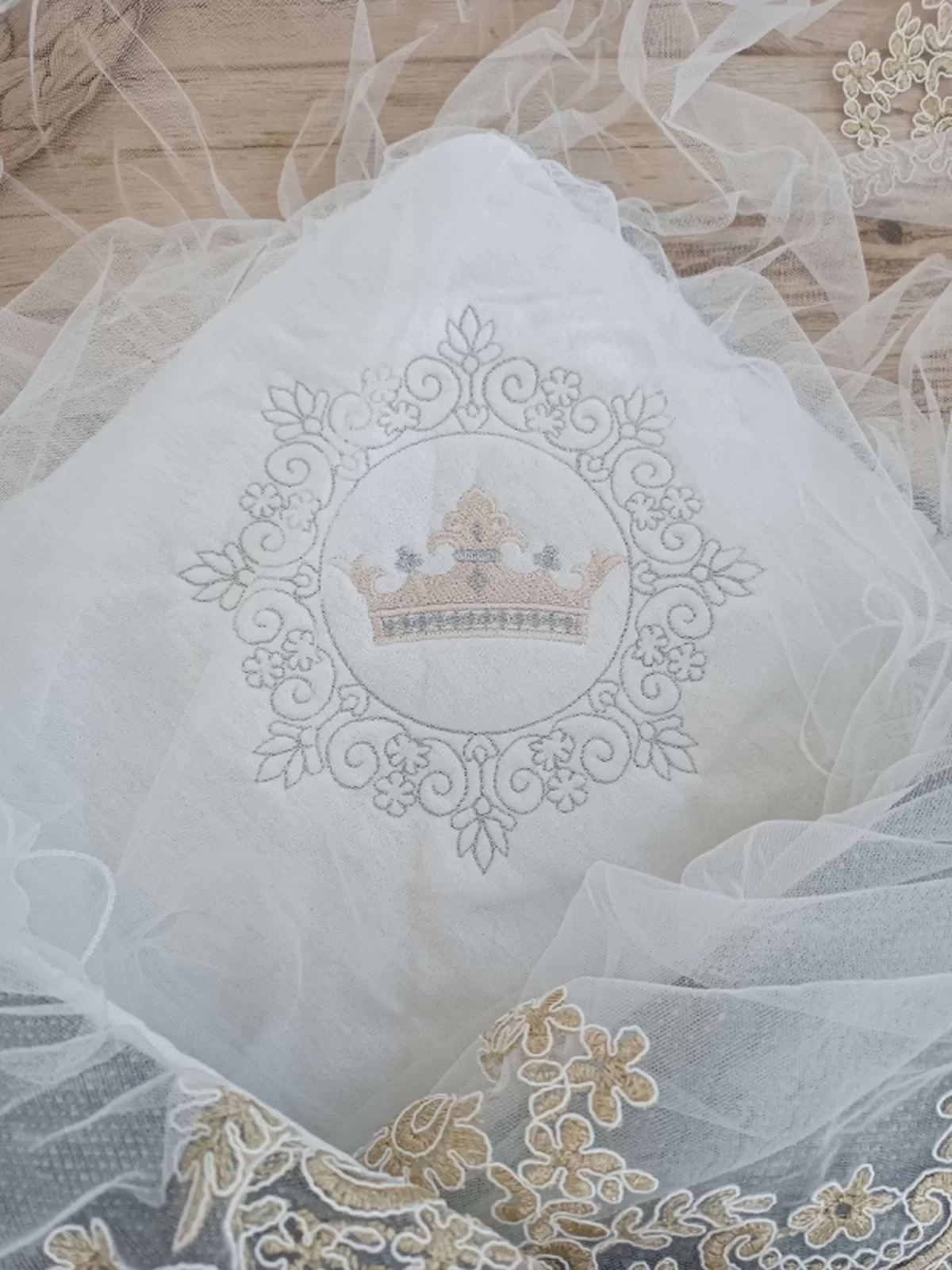 Yenidoğan Beyaz Wool Yün Kumaş Taç Nakışlı Trilüks Kundak Bebek Battaniyesi Beyaz