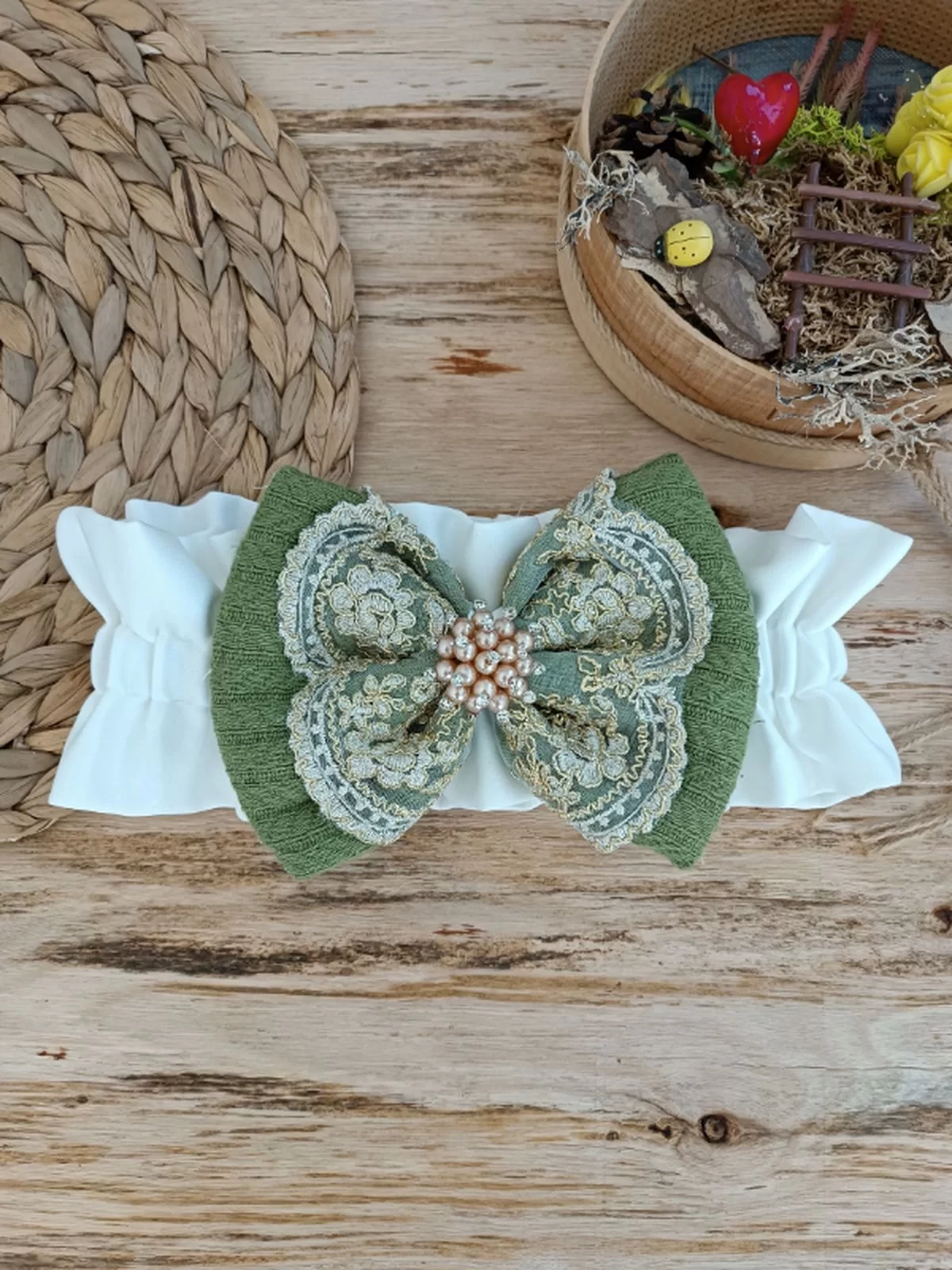 Yenidoğan Kuzulu Taç Nakış Güpürlü Fiyonklu Duvaklı Prizma Taş Unisex Kundak Bebek Battaniyesi Su Yeşili
