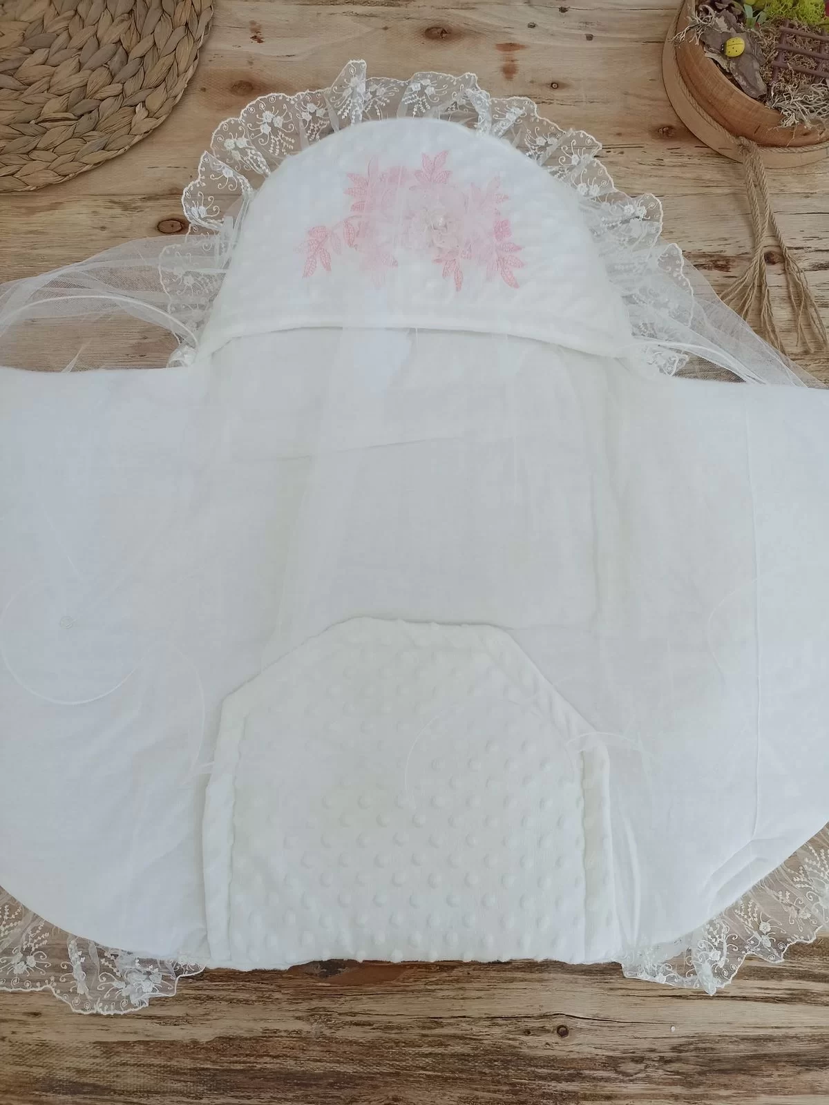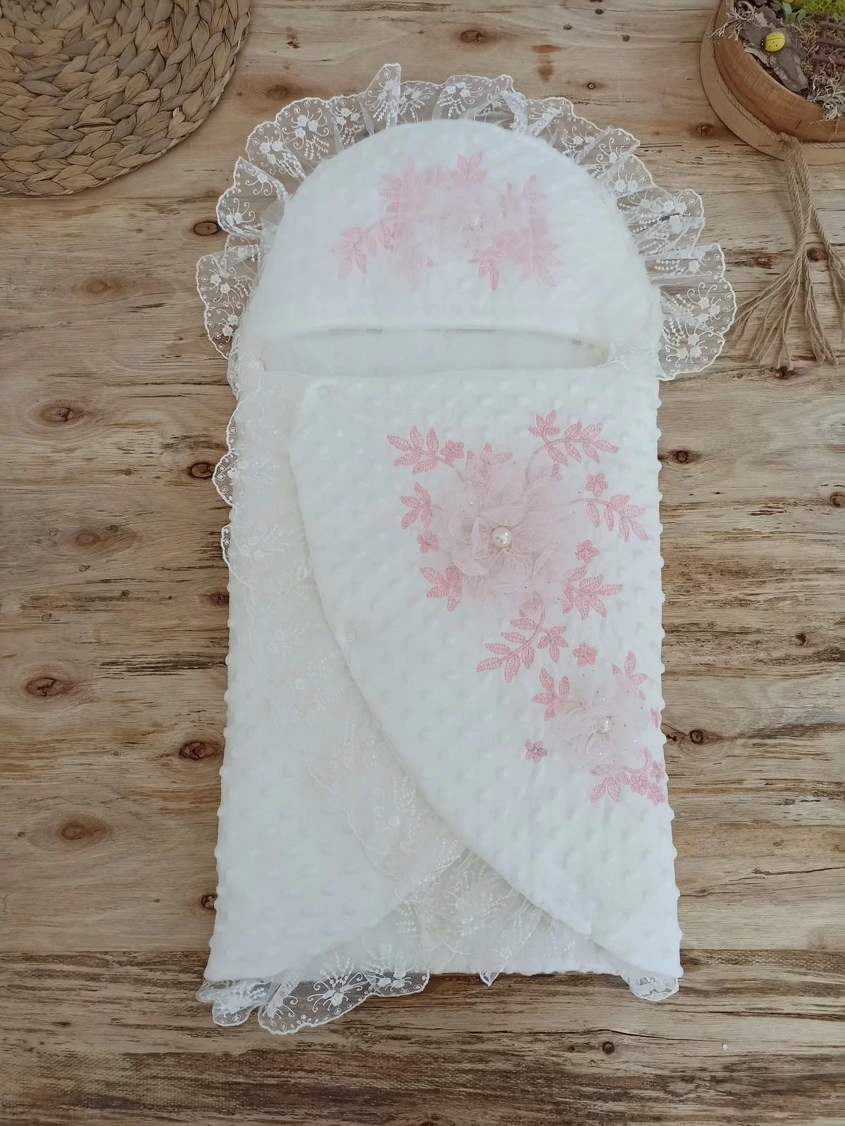 Yenidoğan Topçikli Gül Bahçesi Tül Örtülü Kız Erkek Bebek Klasik Kundak Bebek Battaniyesi