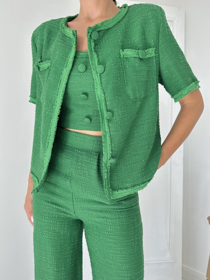 Yeşil Askılı Büstiyer Ceket Ve Pantolon Takım