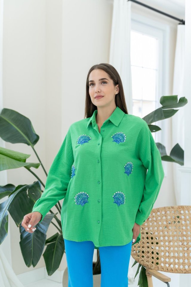 “Yeşil Deniz Kabuk Desenli Gömlek” için yorum yapan ilk kişi siz olun