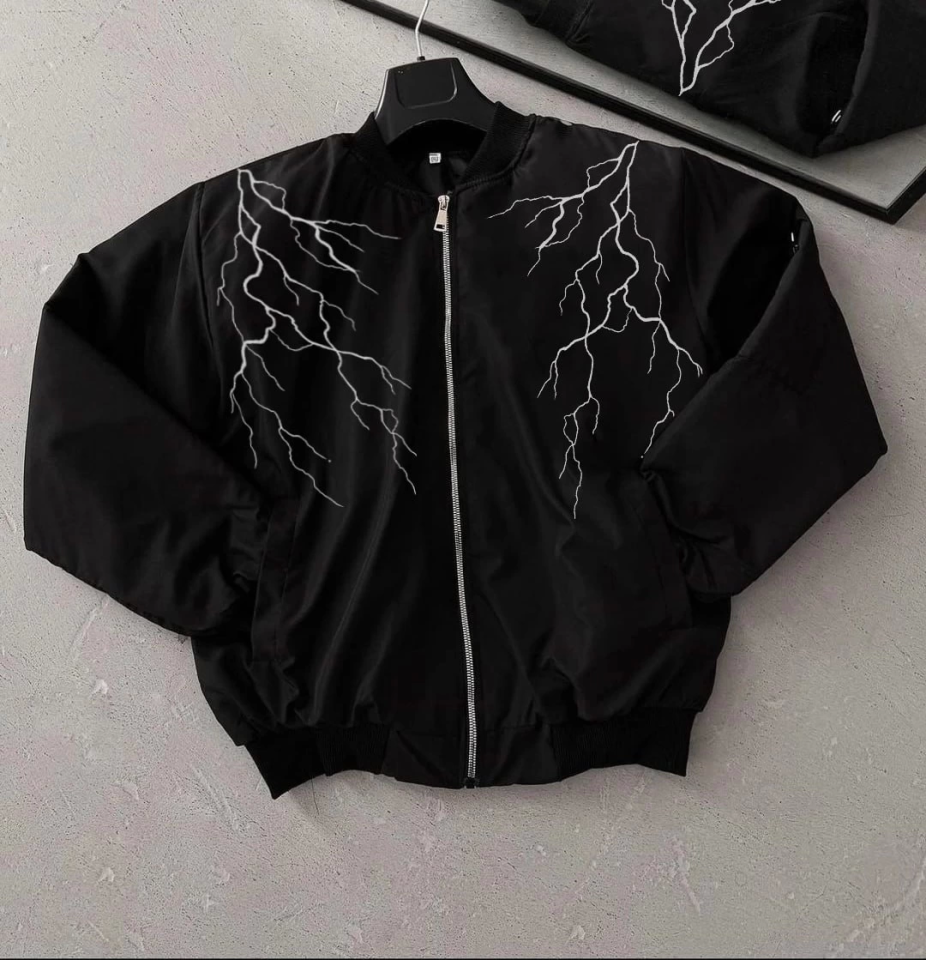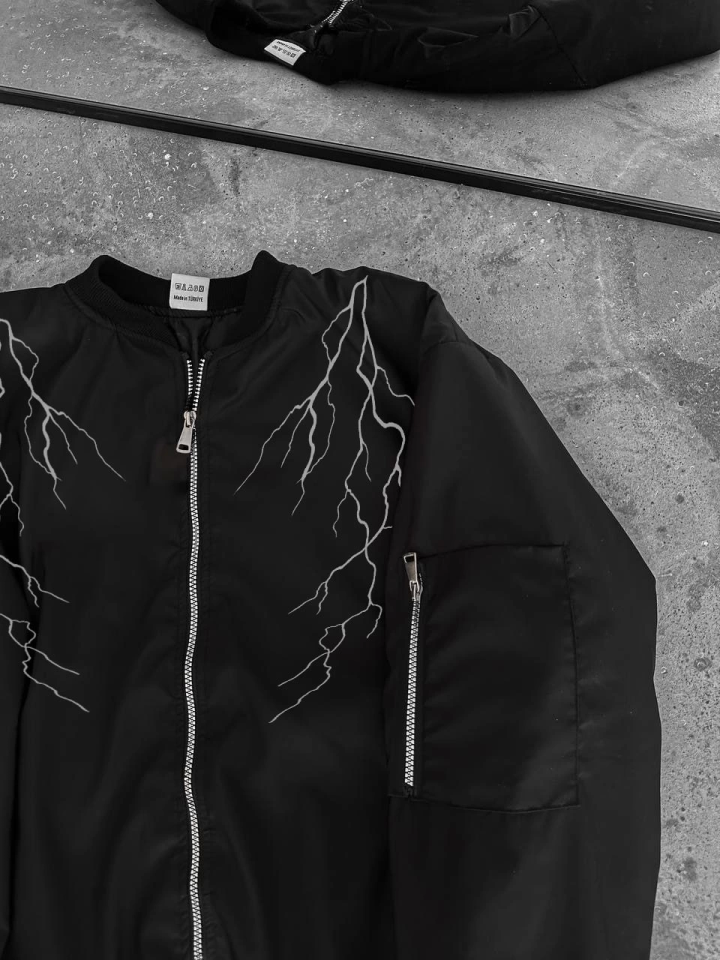 Yıldırım Baskılı Uzun Kol Bomber Ceket – Siyah