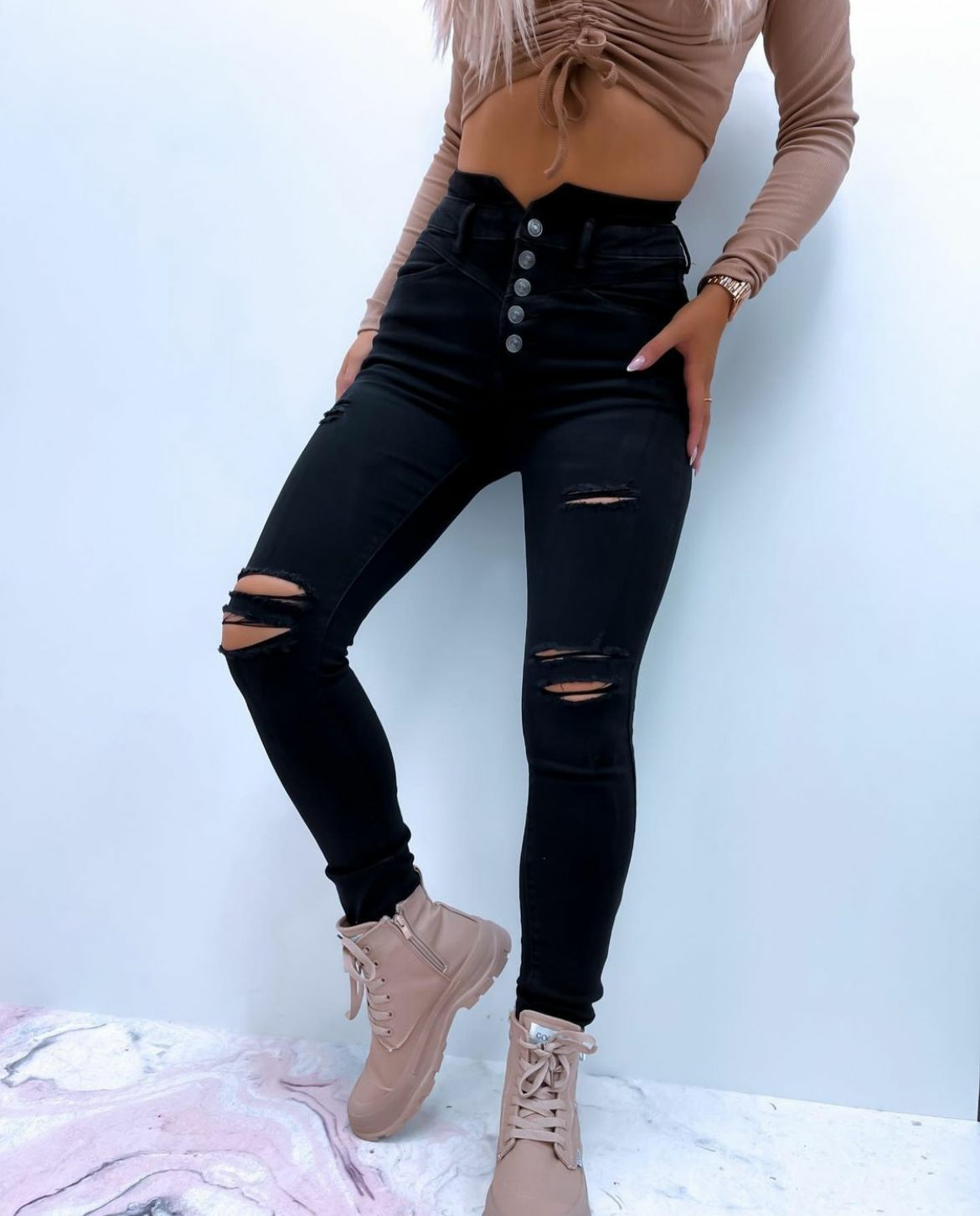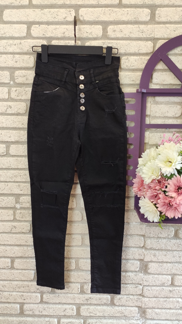 Yüksek Bel Düğme Ve Yırtık Detaylı Kot Pantolon Jean 92cm