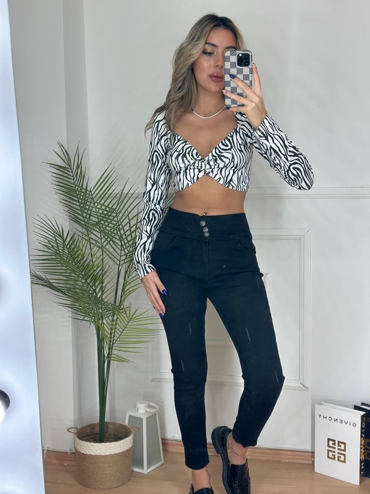 Yüksek Bel Likralı Jean Pantolon 90 Cm