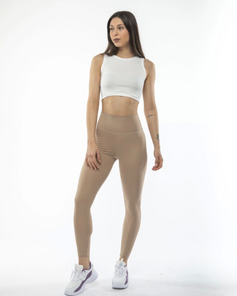 Yüksek Bel Sporcu Düz Tayt – Bej