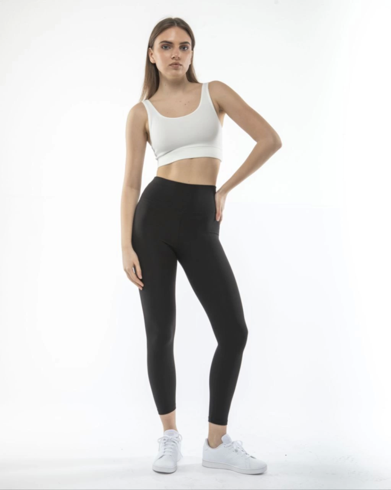 Yüksek Bel Sporcu Düz Tayt – Siyah