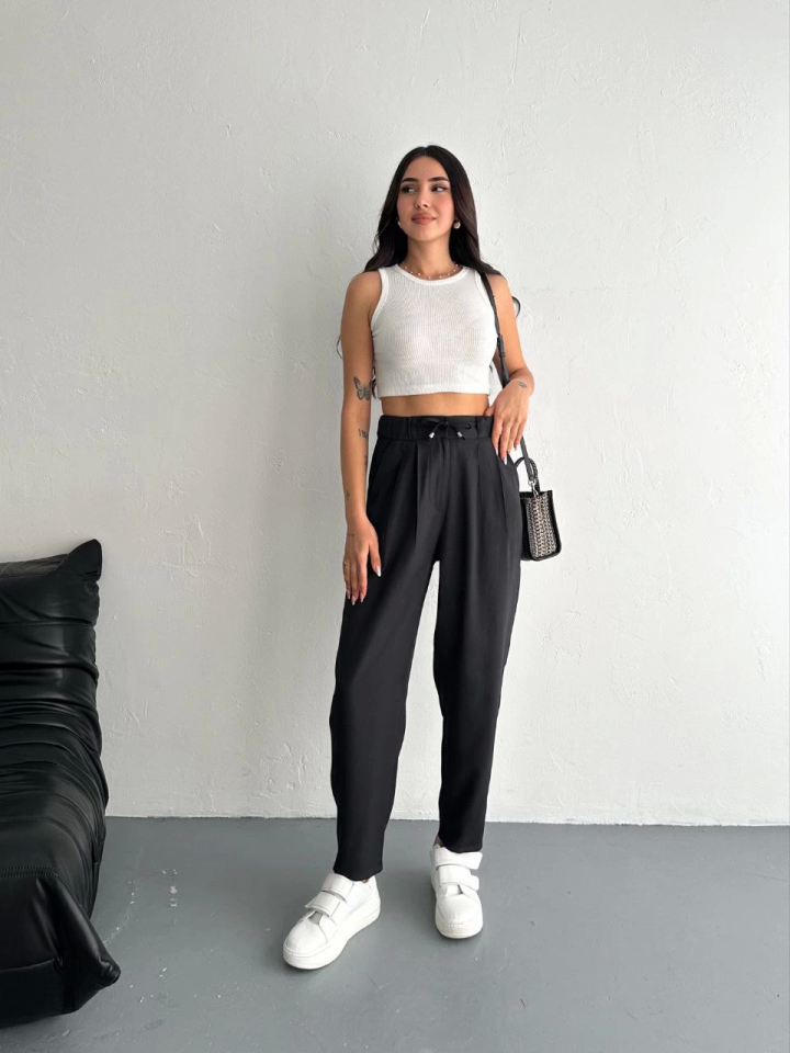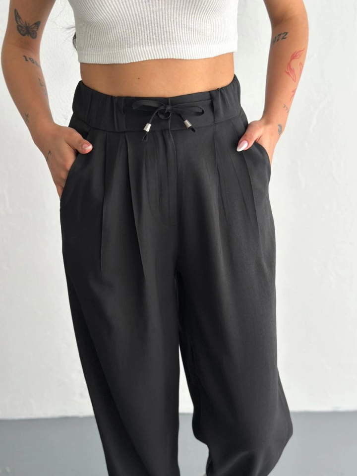 Yüksel Bel Rahat Paça Pantalon – Siyah