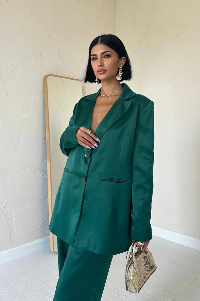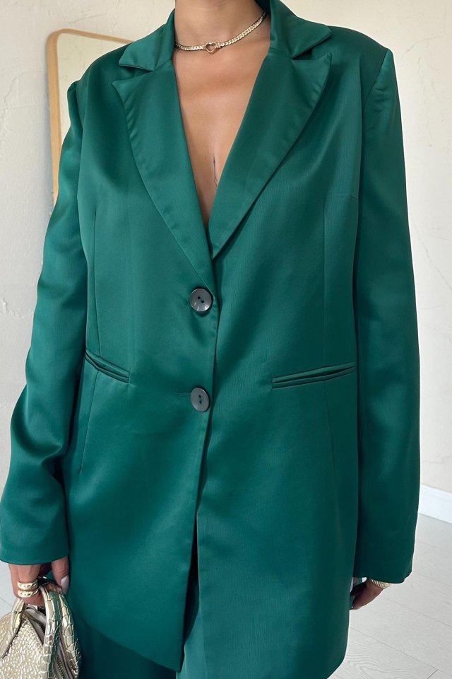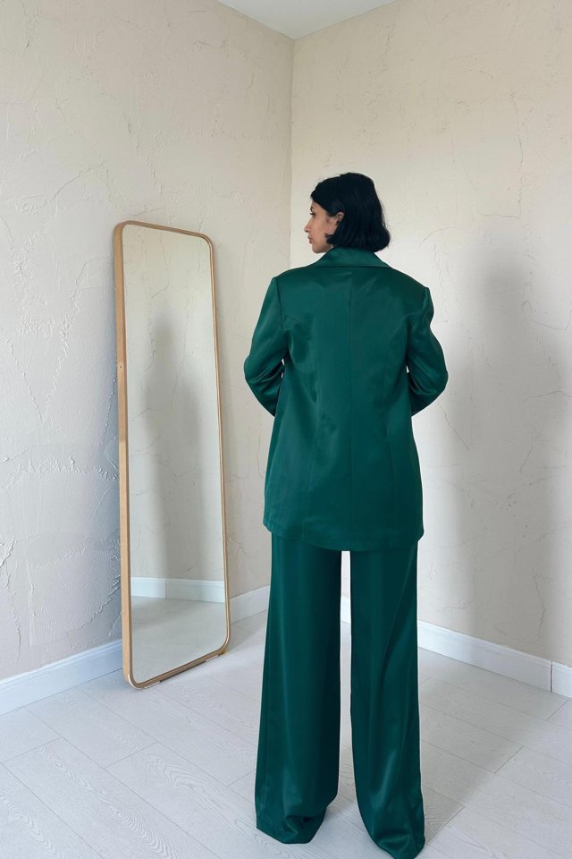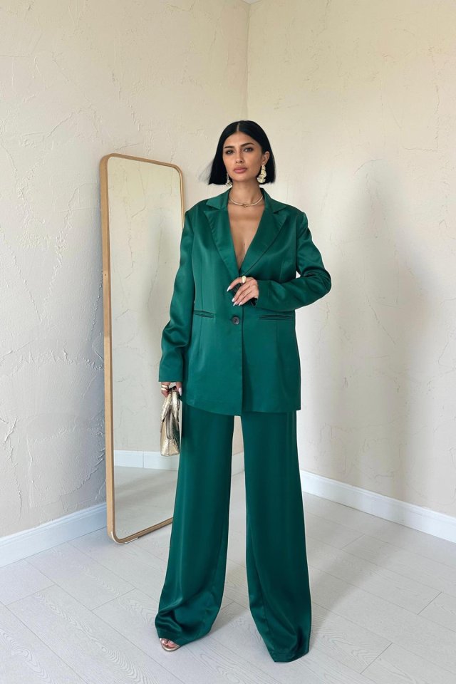 Zümrüt Saten Ceket Ve Pantolon Takım